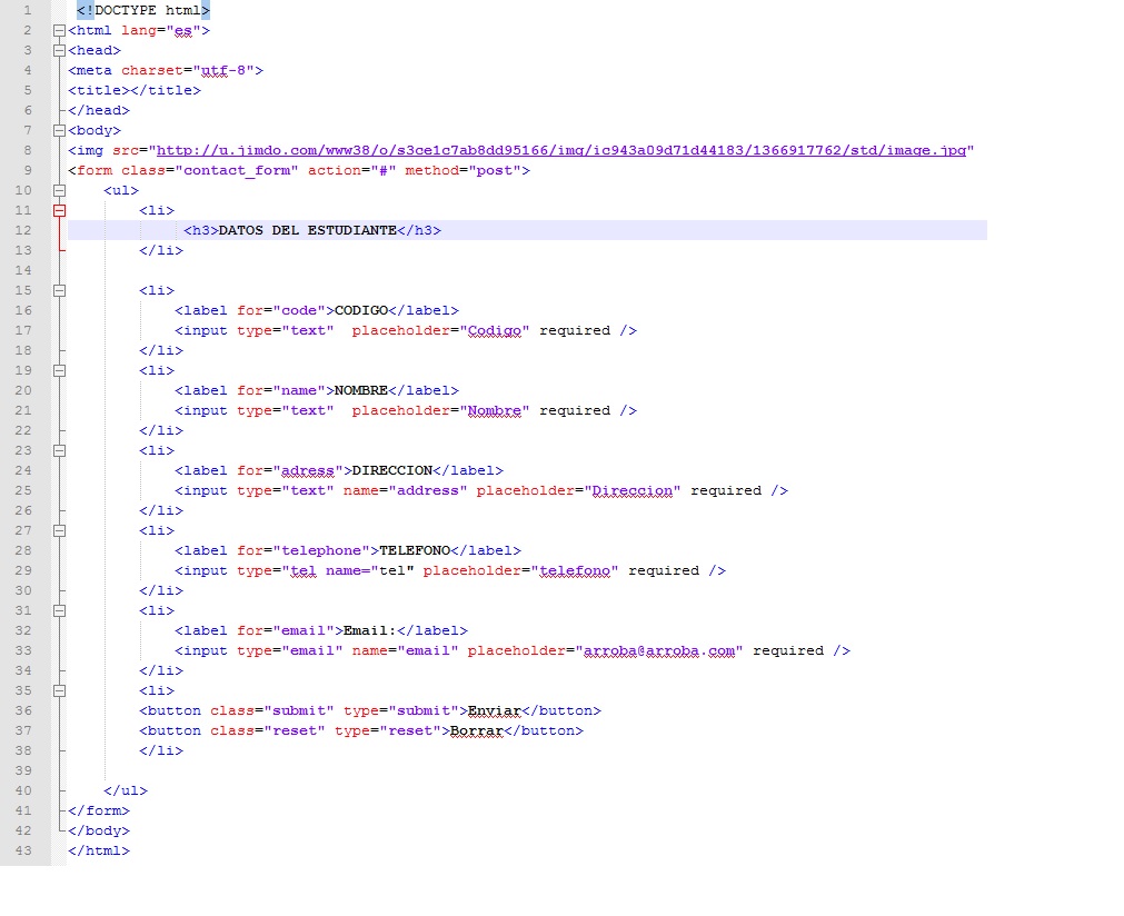 2. Realizar el siguiente formulario con codigo Html5....